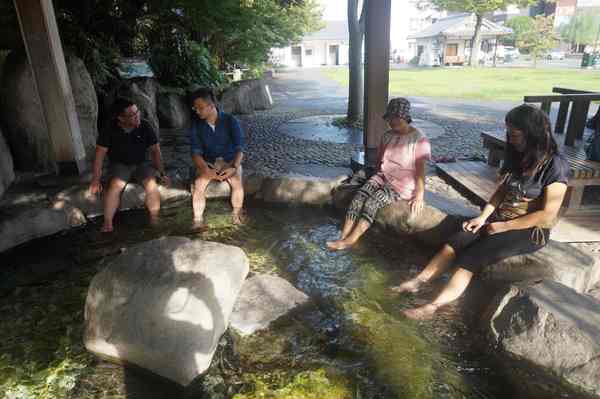 進入【湯之端公園】體驗古人湧泉足湯泡腳情趣。