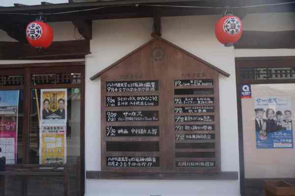 逐漸老舊腐朽的八千代座,經過了5年的大型整修工程後,在2001年(平成13年)6月1日重新開幕。八千代座斜前方的夢小藏,是1887年(明治20年)建造的倉庫,如今被當成八千代座的資料館,展示著八千代座中使用過的戲服、道具等。