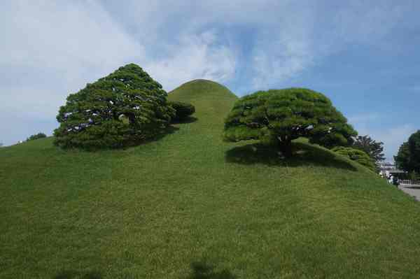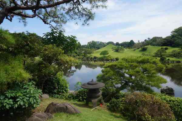 中央的小山丘,是以富士山意象打造的水前寺富士山。