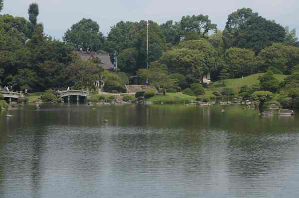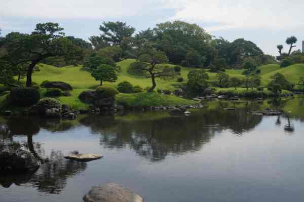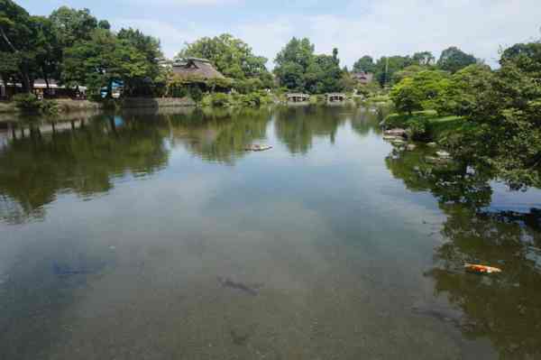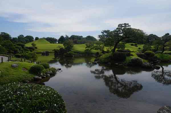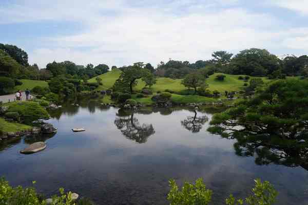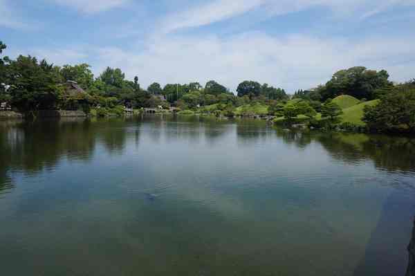 結合了日本多處名勝(富士山、琵琶湖)的意象,建成了桃山式池泉迴遊庭園
