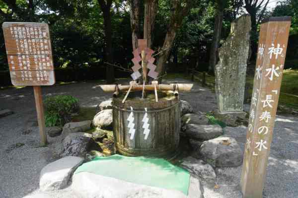 2 神社中有一處來自阿蘇火山伏流的長壽之水,相傳喝了會長壽。
