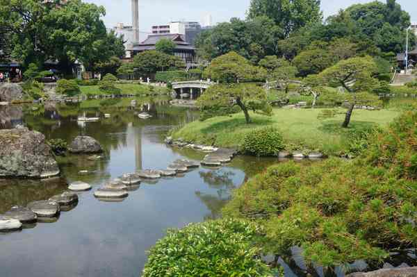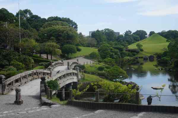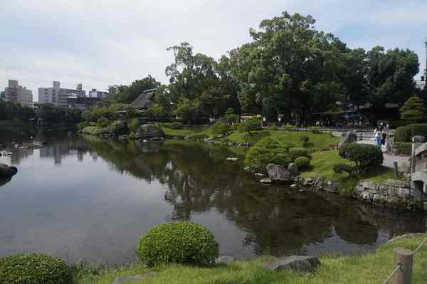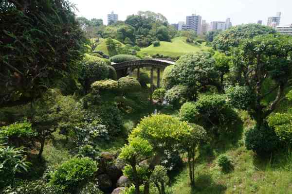 建於西元1632年,由籓主細川忠利下令建造,為面積將近7萬平方公尺,此園中水池鯉魚迴遊,綠意鋪陳,風景十分迷人,相當值得駐足欣賞喔。
