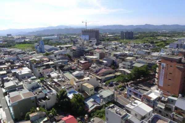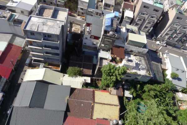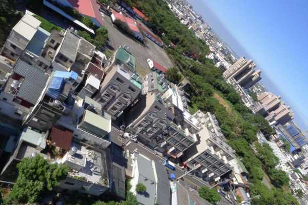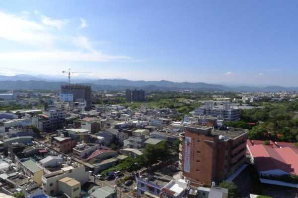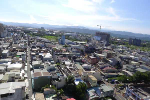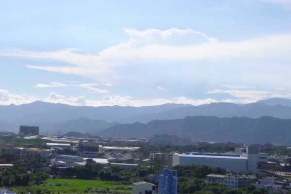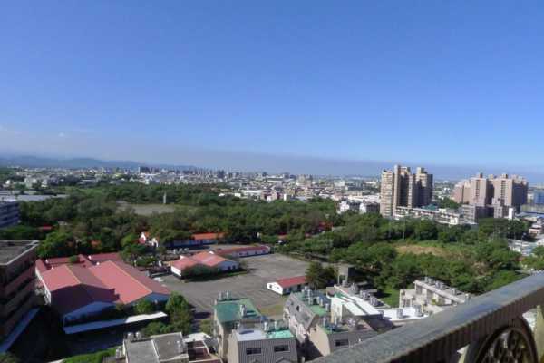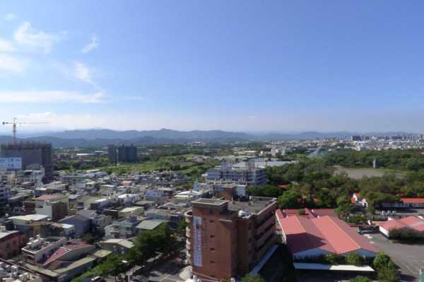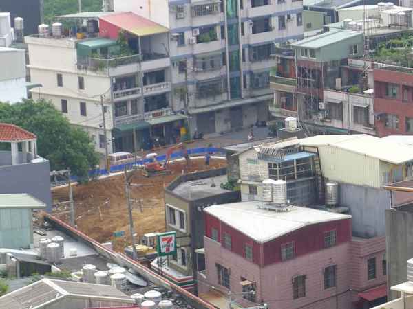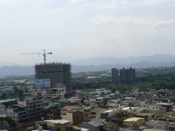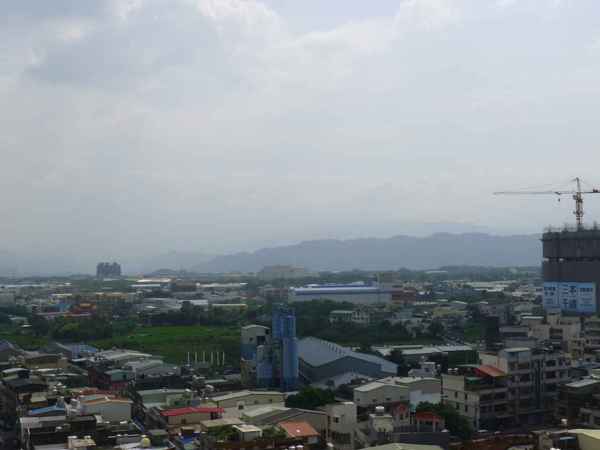 東-遠處,興豐路的新建物和鶯歌的尖山 :