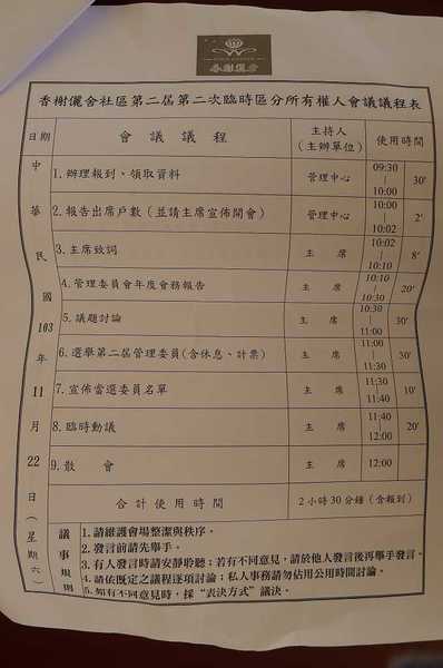 其實,兩周前已經召集過大家來開會,但因人數不足而流會: