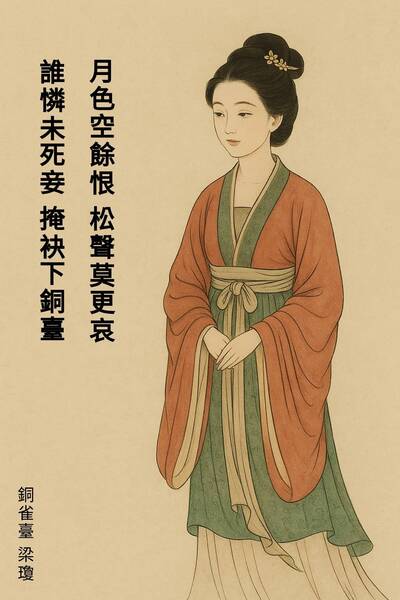 ~ 琅嬛記:郭暖宴客,有婢鏡兒善彈箏,姿色絕代,李端在坐時,竊寓目,屬意甚深。曖覺之,曰:「李生能以彈箏為題,賦詩娛客,吾當不惜此女。」李即席口號曰「鳴箏金粟柱,素手玉房前。欲得周郎顧,時時誤拂弦。」...