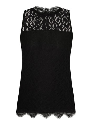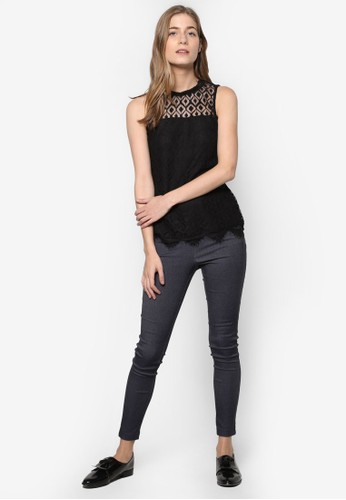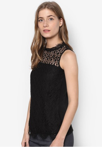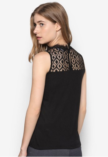 【網購】zalora taiwan 時尚購物網台灣Victoesprit outlet 桃園riana 鉤針蕾絲無袖上衣, 服飾, 上衣