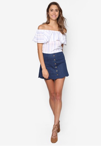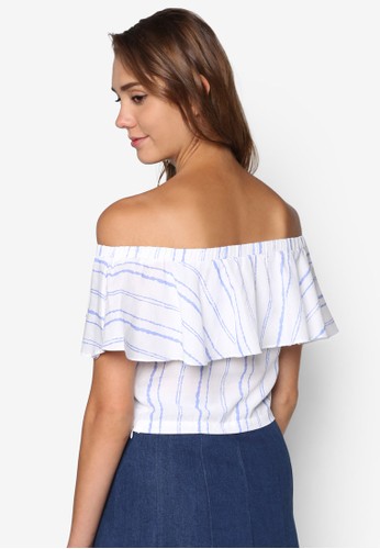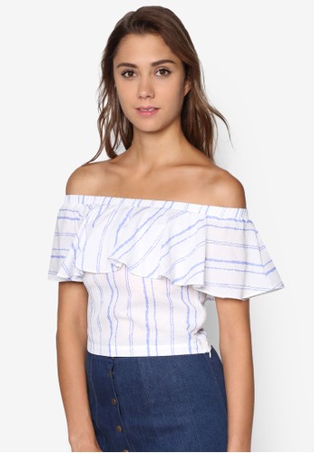 【好物推薦】zalora taiwan購物網Kaia 條紋esprit台北門市反折露肩上衣, 服飾, 上衣