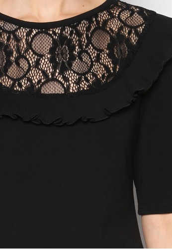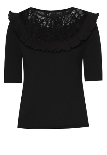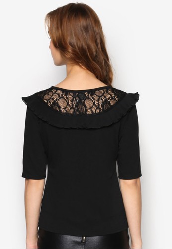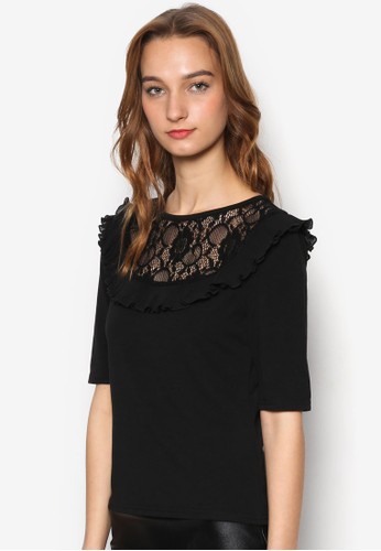 LOST INK 的蕾絲荷葉飾拼肩五分袖上衣,採透膚蕾絲寬zalora鞋評價圓領拼接,配以荷葉邊裝飾,設計優雅浪漫、休閒百搭。 - 聚酯纖維- 圓領- 五分袖- 寬鬆裁剪- 無內襯