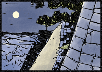 今夕荒城夜半月,月光依稀似往昔。无奈葛藤满城垣,孤寂清风鸣松枝。