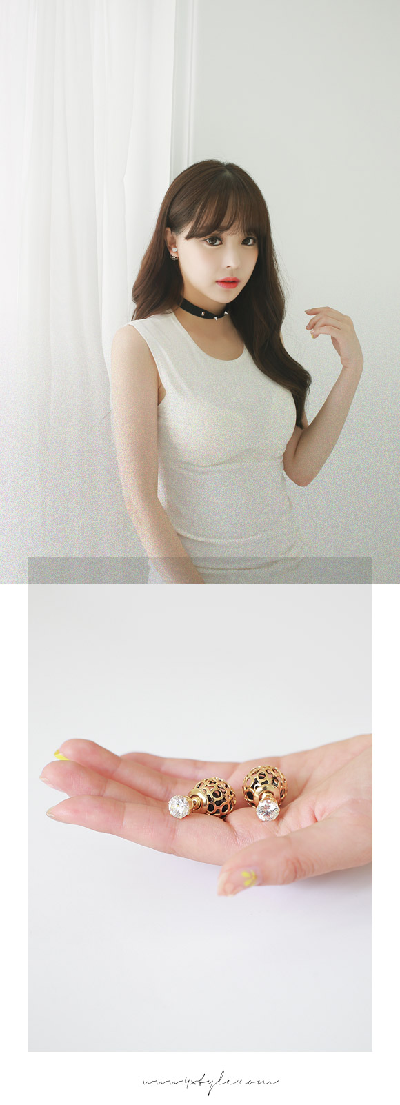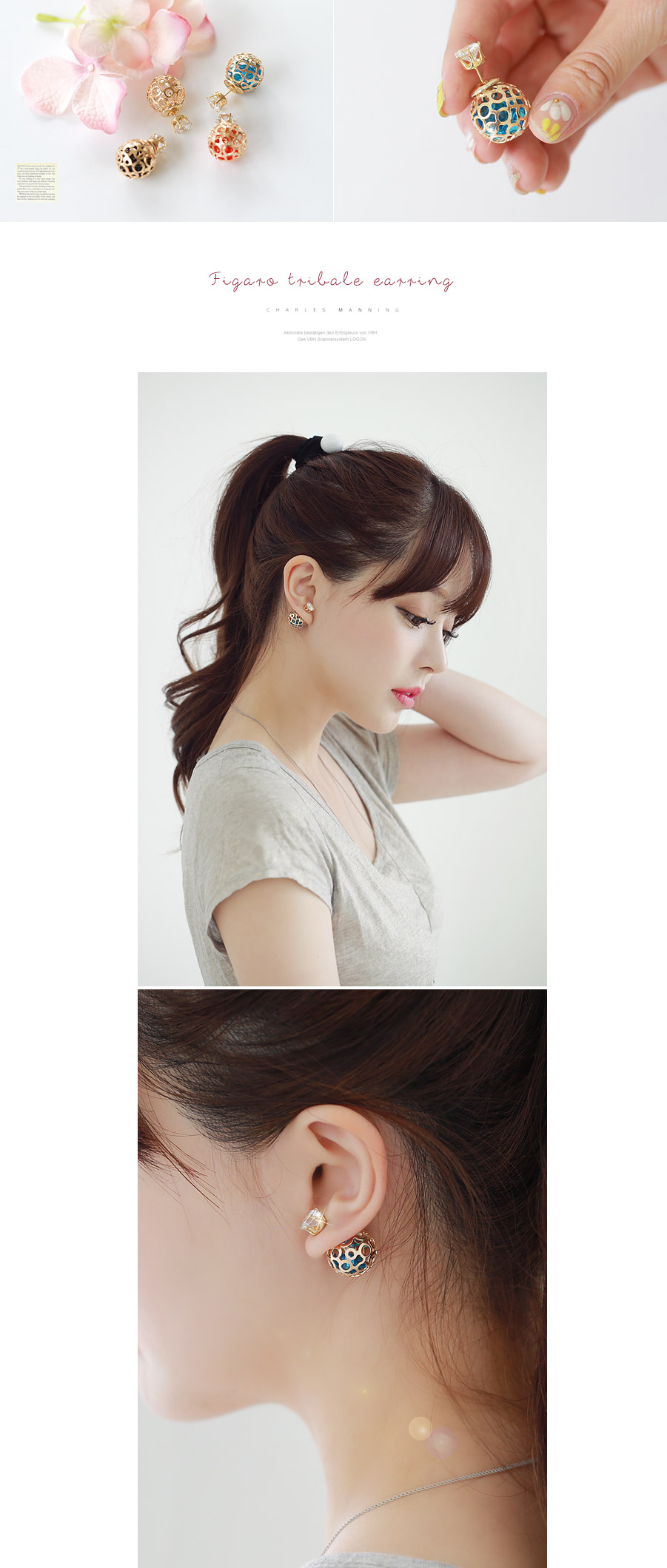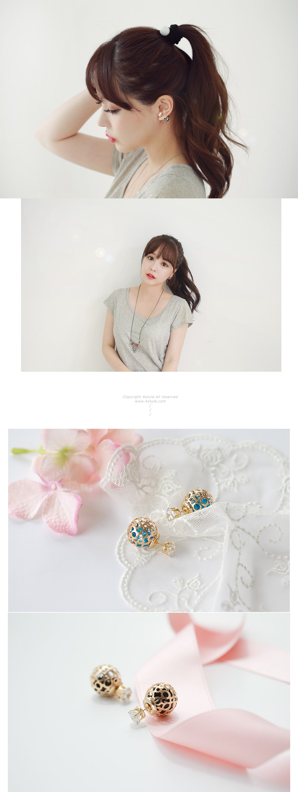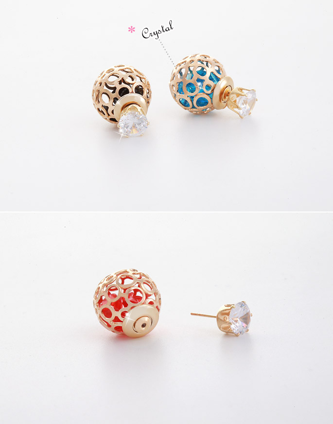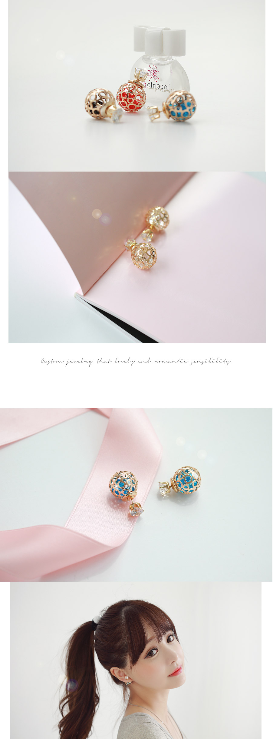 앞에서 꽂고 뒤에서 꽂는 트리블 귀걸이.볼안에는 작은 크리스탈이 들어있어 움직일때마다 크리스탈도 움직이면서 반짝거려요!