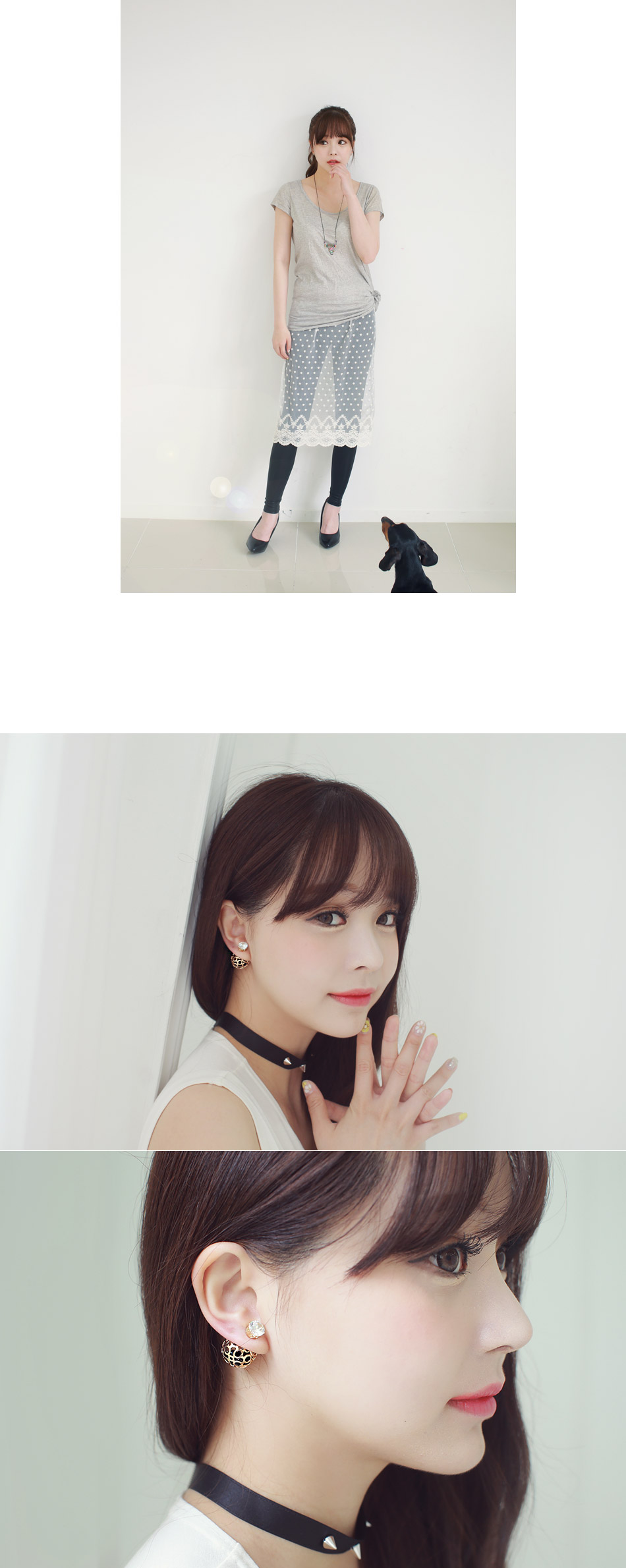 -올림 머리에 더욱 더 우아하고 예쁜 디자인의 이어링입니다.