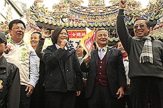 在城隍廟參拜時,由於眾多媒體站在蔡英文前,