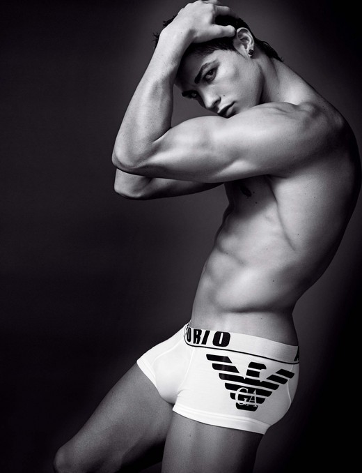 衣廣告代言人寶座,寬衣解帶半裸入鏡展現健美肌肉,畫面十分養眼