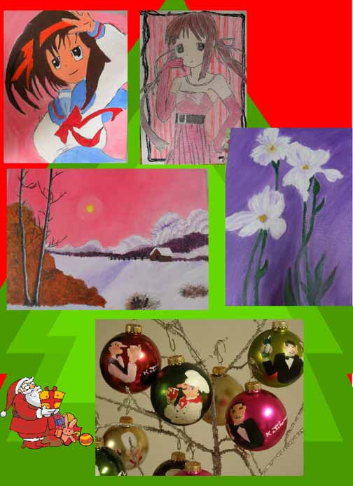 第三張是高年級女生畫的風景 和漫畫人物 , 有一張很特別的是畫在聖誕燈泡上的是我的畫家朋友