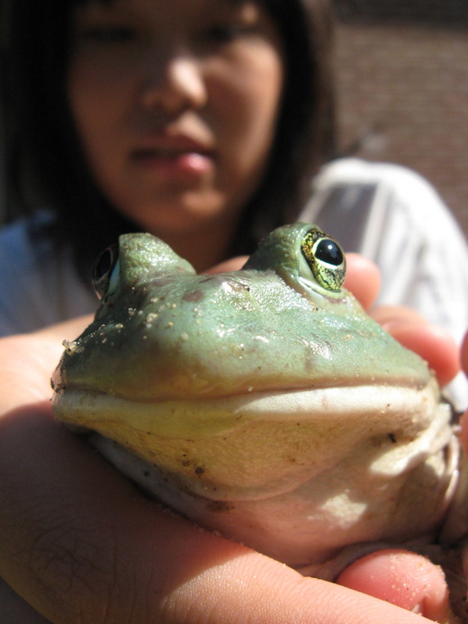 眼下只先po一張「沒臉」的玉照,那是我們家女兒的寵物牛蛙,名字取自日本宮綺駿卡通電影“Spirited Away" 裡吃了青蛙的鬼怪 No Face。藉以反諷自我面對FACEbook時的face value。