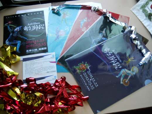 這是舞鈴劇場的定目戲:奇幻旅程,一部結合扯鈴,音樂,舞蹈及科技的表演.沒想到扯鈴可以如此精彩表演,類似歌劇貓和太陽馬戲團的結合.值得一看.不過要注意不要像我娘說空調怎麼這麼冷? 舞蝶館是一個沒有門的展館,所以是自然冷啦!相關資訊請上兩廳院網站.