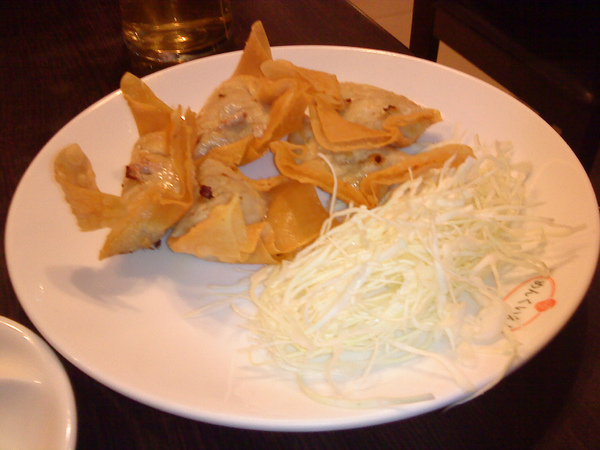 其實吃完這碗麵就很飽了,但是最近吃飯很愛鋪張的亂點,所以又叫了一盤炸餛飩。炸餛飩本身味道一般,不過黃芥茉醬稍微挽回一點分數,只是如果沒有免費餐卷,我想我應該不會想再點這道料理。