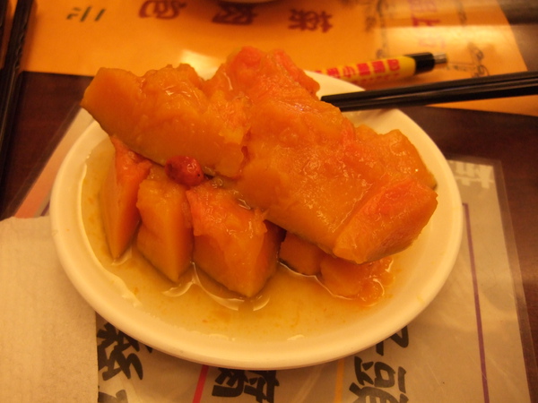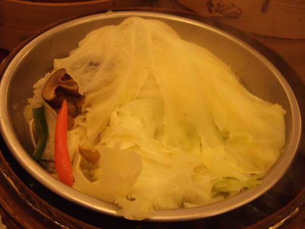 蟹黃湯包和乾隆灌湯包做的較紮實,味道也還不錯,整體感覺略優於小籠湯包。蒸高麗菜和那碟南瓜小菜一樣,都是很樸實的口味,但是頗有解膩的效果,看起來也不難做,上頭擺了辣接段、香菇片、破布子和蔥段(不知道有沒有蝦米,我沒注意),感覺是一道可以在家製作的菜色。牛肉捲餅大概是我最不喜歡的菜色,因為它的醬料太鹹,牛肉太柴,餅太老(放軟了),吃起來覺得很普通。