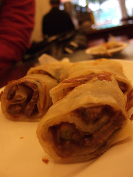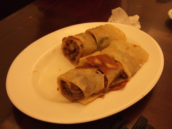 牛肉捲餅,共有六塊,牛肉太柴,醬料太鹹,不是很推薦。