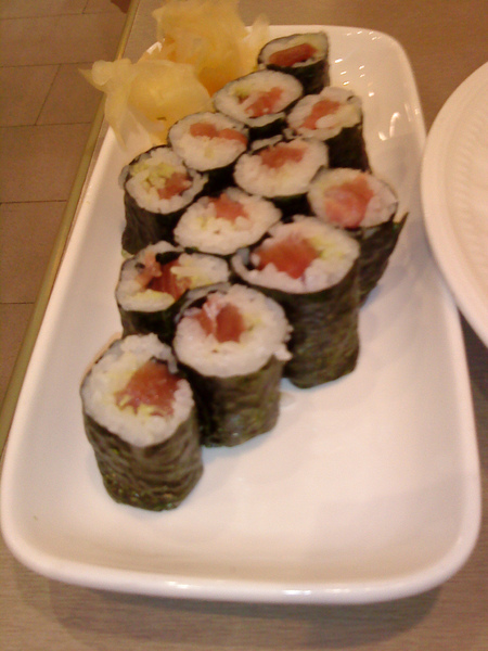 買了GRD III之後,和J在附近找餐廳,最後看到這家標榜1976(還多少?)開始營業的餐廳---麗都日本料理,就進去吃了。我點了鐵火卷(200元),上桌時看起來不是很美味,因為每段壽司的長短不一,海苔看起來也塌塌的,吃的時候也真是這樣,海苔被飯的溼度給浸軟了,影響口感,吃來一般。