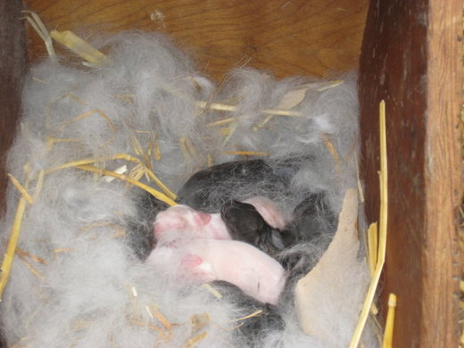 看到母兔開始拔身上的毛,