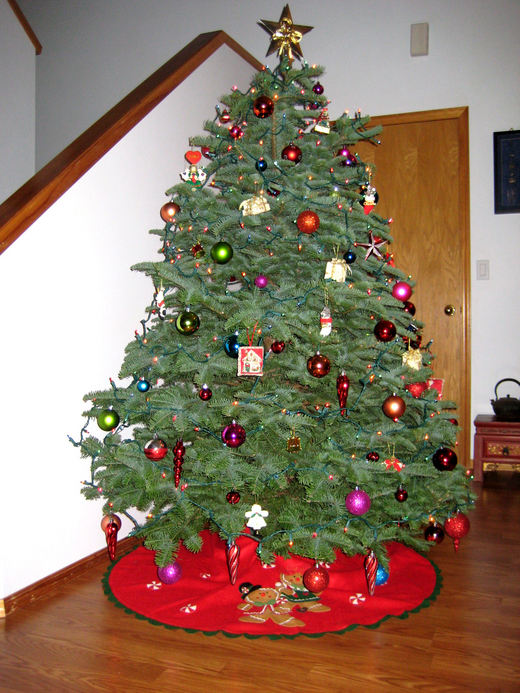 掛了一堆裝飾和彩色燈泡的聖誕樹,