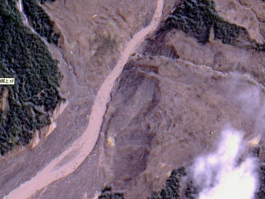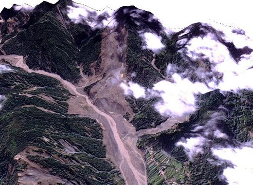 八八水災讓高雄縣甲仙鄉小林村淹沒,國家太空中心福衛二號拍攝的