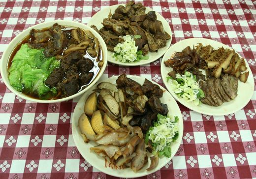 皮、豆乾,第三鍋豬舌頭、大腸、豬肚,最後一鍋專門滷牛肉,「每