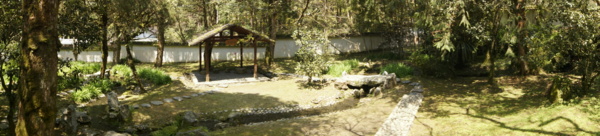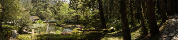 明池的富春庭園區位於明池園區內的東側,是依據該地區屬紅檜種植林區的特色造景,採取黃公望的富春山居圖畫意內容規劃出來的庭園。在所有的簡介中並沒有特別說明這是什麼庭園,一般人都會說是富春庭園,於是我也覺得這是該區的主要意境,便以此自我命名。富春庭園區包括了桃蘭亭、曲水庭、流觴亭、花亭、苔亭、慈孝亭、靜石園、禪亭、石亭、富春園,以及該區唯一擁有山澗和小池的水琴窟。由於都是由白牆黑瓦的江南庭園建築格局魚貫其間,形成相當特殊的,有如畫境般的庭園景觀。我相當喜歡這個園區,因為這裡簡直就像走入畫境一般,讓我久久不忍離去。這地方可以被如此細心保持下來,也因為榮民弟兄們感念當年曾經縱橫山林與他們稱兄道弟的小蔣來過此地,慈孝亭就是他命名的,於是把這山林庭園保留下來。走過此庭園,不只是觀賞美景,還需有一些文學素養,瞭解每個庭園命名的涵義和歷史,您就會忽然間睜大眼睛觀賞出不一樣的美景,領略富有詩意的庭園景觀。