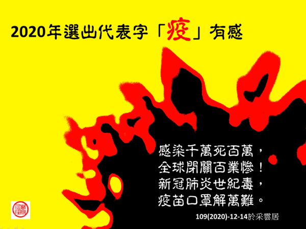 今年聯合報所舉辦的年度代表字,選出「疫」字,相當充分地代表今年全球最真實的現況,大家都希望已經憋了一年的世界,可以趕緊突破,回復以往的生機勃勃,就看全世界的人們是否可以拋棄己見,共同合作,掃清病毒了!
