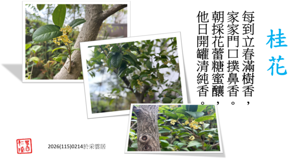 桂花一直是農村家庭門前必種的開花植物,因此,每到桂花開時,只要經過家家戶戶的門前;總會迎來一陣陣樸鼻的桂花香。我也喜歡桂花,所以,前後院都種有桂花盆栽。今年已經全部盛開;雖盛開多日仍然綻放香味。有人拿桂花作成桂花釀,有以冰糖拌桂花的;有蜂蜜拌桂花的;還有麥芽糖拌桂花的桂花釀,各有獨特風味。