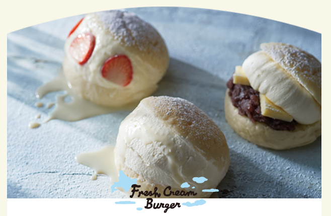 「想讓大家品嚐好吃的北海道鮮奶油!」,因此我們推出有著濃郁牛奶醬夾心的“鮮奶油漢堡”,牛奶醬是用有馬斯卡彭起司提味的北海道鮮奶油中,再加入澤西牛奶所製作而成。敬請大口大口地品嘗。