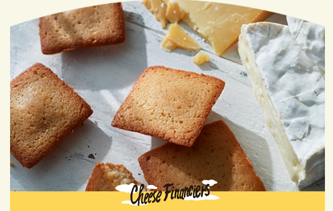 濃郁起司與香濃奶油,要找出完美的搭配為屬不易,因此起司口味的費南雪相當少見。本產品用豪達起司與卡芒貝爾奶酪成功製成美味的“起司費南雪”。細細品嘗費南雪原有甜味中流露出的起司香氣。
