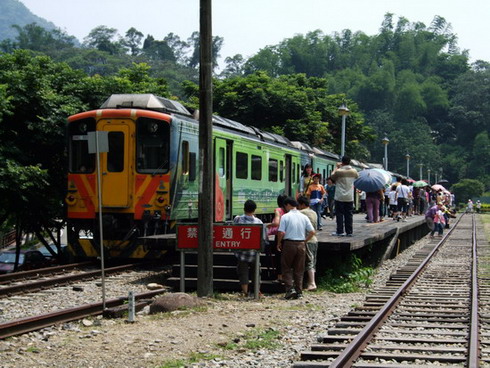 前往車埕時,正好遇到從彰化開來的火車進站,假日實在太多人