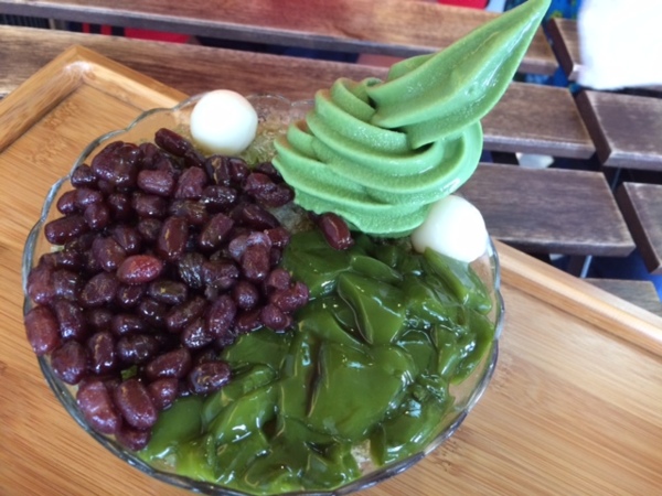 跟帥哥,Michael and Oscar plus Howard 一起吃抹茶冰。