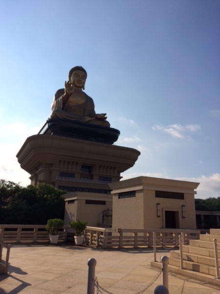 隔日早上和妹妹Line過後,和外國人慢慢晃到樓下餐廳去喝咖啡,外國人還吃了一顆荷包蛋,我看到食物就飽了,更何況妹妹說中午要去吃鼎泰豐,我還是喝咖啡就好了。我跟外國人說我要帶他去小七觀光,外國人說小七有什麼好看的,我說咱們台灣的小七跟美國的小七很不一樣喔 !外國人看到窗明几淨的小七終於明瞭我意啦!為了避開人群,我妹約我們十一點就去巨蛋吃鼎泰豐。真的,我和外國人在臺灣的日子就是不停得走跳吃食,肥不是沒原因的!在巨蛋樓下的超市買了一杯日清醬油杯麵讓外國人回美後嚐鮮(外國人跟我說這是他吃過最好吃的杯麵了,真是沒把我們的唯力炸醬麵放在眼裡!)我跟妹妹說,我想要逛逛大創還有優利酷龍,我們兵分兩路_皞皞,外國人還有皞皞爸上星巴克打電玩,我,我妹還有我媽逛樓層去。沒外國人在旁邊逛得比較開心!採買回來後,皞皞爸要帶我們衝佛光山,我媽累了就先送她回去休息。我今天穿得非常之隨便,夾腳拖,運動褲,白T,牛仔背心又帶著我的近視眼鏡,很怕對諸佛不敬啊!十年沒來,佛光山還是這樣的壯麗。就說我們走的是觀光客路線嘛,臨走之前又到紀念品店貢獻銀兩,我妹還買了紅豆餅來吃(好好食喔!)。哎,快樂開心的日子總是過得特別快,明天就要往北走準備星期四回美。晚上到弟弟玲伶家按門鈴告別,想到下回不知何時可碰面不禁淚下,弟弟說要回家了應該要高興才是!