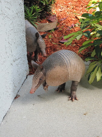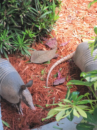 我從床上跳起來飛奔到客廳, 探頭往窗外一看, 可不是嗎 - 四隻 Amadillos
