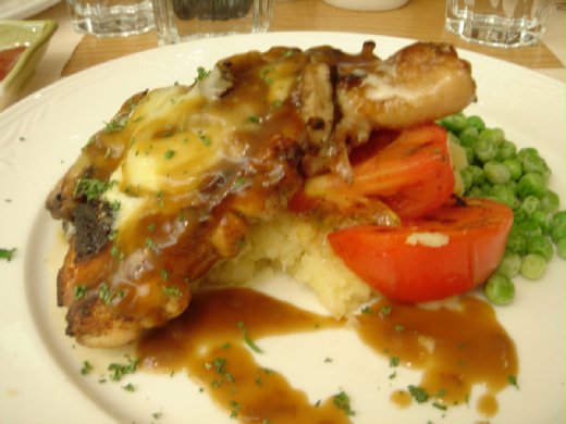 今天點的是起司火腿雞排在機旁下的是馬鈴薯泥,大部分的人都會擔心吃了會胖,嘿嘿~不過已經是人婦的我可是先吃了再說.