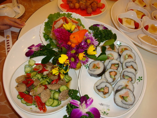 那天小堂弟結婚,喜筵辦在基隆的"基隆港"我那桌是素食桌.好吃又精緻,那伊天我也是吃的肚子撐爆了.
