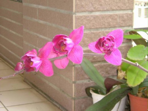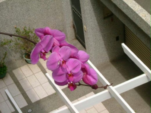 今年過年後,蝴蝶蘭幾乎在同一時間全部盛開,並且從陽台透出頭去招展著,從一樓往三樓看,叫人好舒服,好~~感觸。