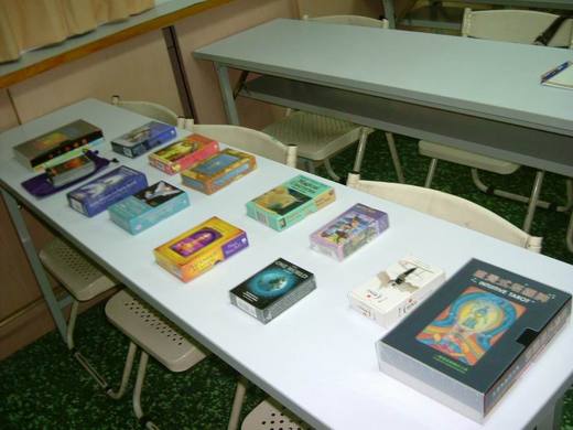 因為絕大部分是借來的,我小心翼翼地交代同學們不可自行打開(萬一掉了一張,我如何跟好友交代哇!),大家很不過癮的把玩著外盒,後來,我還是儘可能地拿在我手上開展,大家才大致欣賞到各種牌卡的內容。