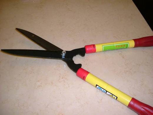 聽朋友說起,五金行有賣園藝大剪刀(可憐吧!這家女主人連這個都不豬到哩!),前兩天特地去買了一把,哇哈哈!好一把大剪,這下我有武器可用,不會像上回搞不清狀況就一頭鑽進水塔,這下子做工也一定輕鬆愉快多啦!