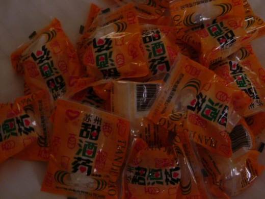 到這商場主要想幫朋友問問有沒有「蘇州酒麴」這種專門製作甜酒釀的材料,結果居然被我找著了,開心之餘,將他店裡全部的小包裝酒麴都買下啦!算帳的時候,老實的店員居然還主動將我迷迷糊糊多給他的一張二十元紙幣還我,這倒讓一直抱持著「上海人超精明厲害」的印象的我,頓時刮目相看,還特地再跟那店員買了一包八寶菊花茶,算是感謝之意囉!