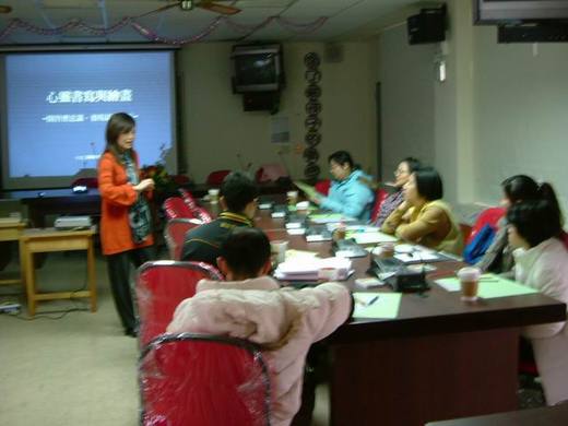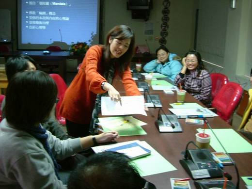 工作人員拿出一盒盒粉蠟筆和圖畫紙擺在會議桌上,一位女老師笑著脫口而出:『呵!蠟筆畫畫,好幼稚喔!』