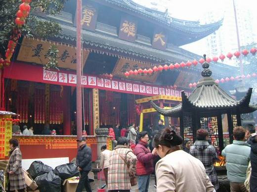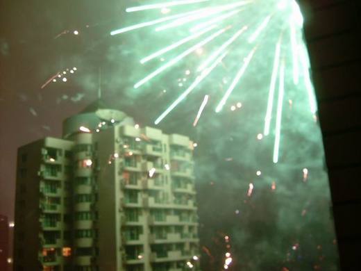 初四晚上,全上海像是瘋了似的狂放鞭炮與煙火,景象美麗極了,卻也吵鬧極了。午夜時分,這瘋狂情境到達巔峰,我從十九樓陽台看下去,居然有人在馬路中央放煙火。不遠處的玉佛寺也像炸開了般,浴在煙火的煙霧瀰漫中。附近小區到處是焰火飛騰,好像大家在比拼誰家的煙火秀精采。我心裡的想法很俗氣,只想到上海人還真的很有錢,這一晚的鞭炮煙火花費肯定不貲。對比上海的過年氣氛,才真的覺得台灣冷清多了。