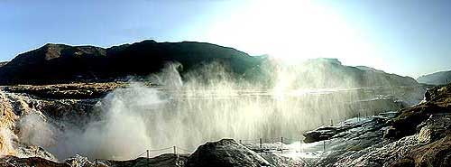 咆哮的黃河,桀驁不遜,那種氣概山河的壯觀之勢,在壺口瀑布被馴服了。