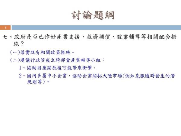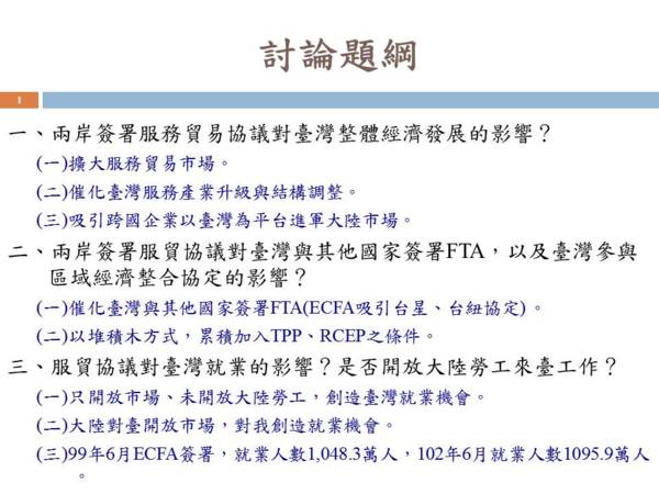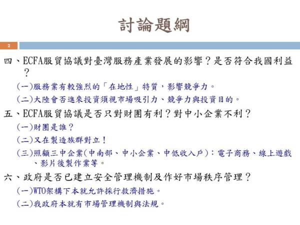 102年7月31日於立法院《ECFA服貿協議》公聽會簡報