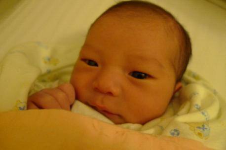 再度進了急診室,助產士看我那麼痛直接內診,一摸直接就回頭喊:「這床直接送樓上,請病人家屬辦住院」,我開心一下終於被醫院收容了,隨口問一下我開多少了,助產士說:「已經快生了,開9公分了」。啊咧,我整個呆掉,居然已經開了9公分,那我早上是被退假的喔?助產士一面急送我上樓,一面忙著調早上的病歷,要確認早上退貨是否有誤診的狀況…。可是真的沒有,是我自己真的開那麼快。