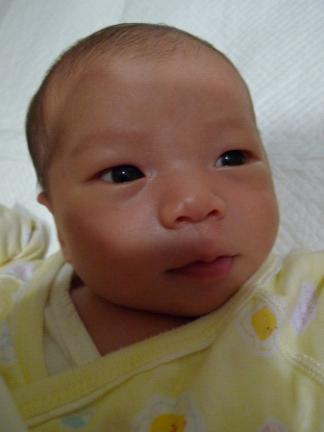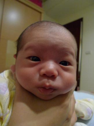 ps. 照片是20天的小小夫,有沒有長大啊??我沒有掐他脖子喔,是在幫他拍拍嗝,他自己想睡覺所以擺了無奈的臉啦…。