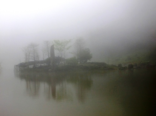 群,形成彷彿太古殘木的景觀。同時明池西北方背景之山峰狀似「筆架